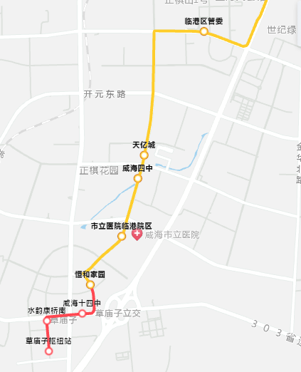 站點設(shè)置:長峰(中諾口腔)、世紀(jì)大廈、韓樂坊北、韓樂坊、蒿泊(德韓口腔)、豐禾商業(yè)廣場、公交經(jīng)區(qū)分公司(魯東駕培公司)、仁愛中醫(yī)院、江家寨、臨港區(qū)管委、天億城、威海四中、市立醫(yī)院臨港院區(qū)、恒和家園、威海十四中、水韻康橋南、草廟子樞紐站